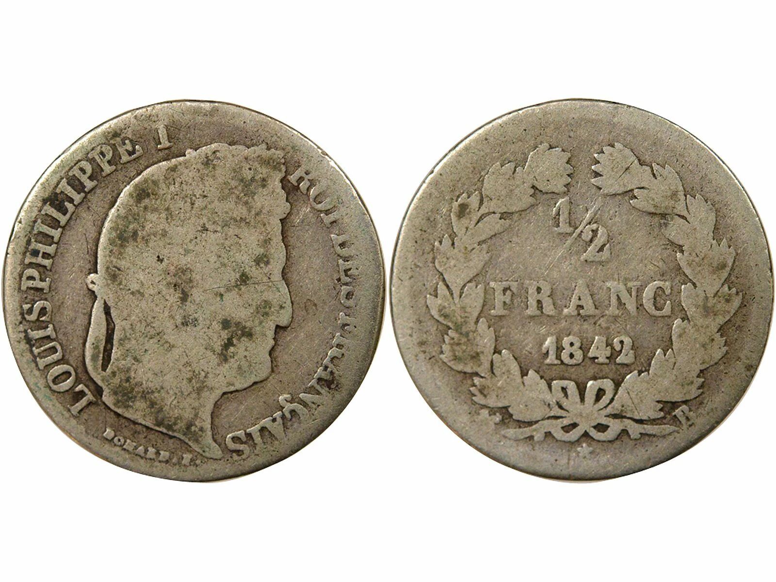 Pièce France Louis Philippe I - 1/2 Franc Argent - 1842 B Rouen