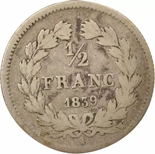 Coin France Louis Philippe I - 1/2 Silver Franc - 1839 W Lille