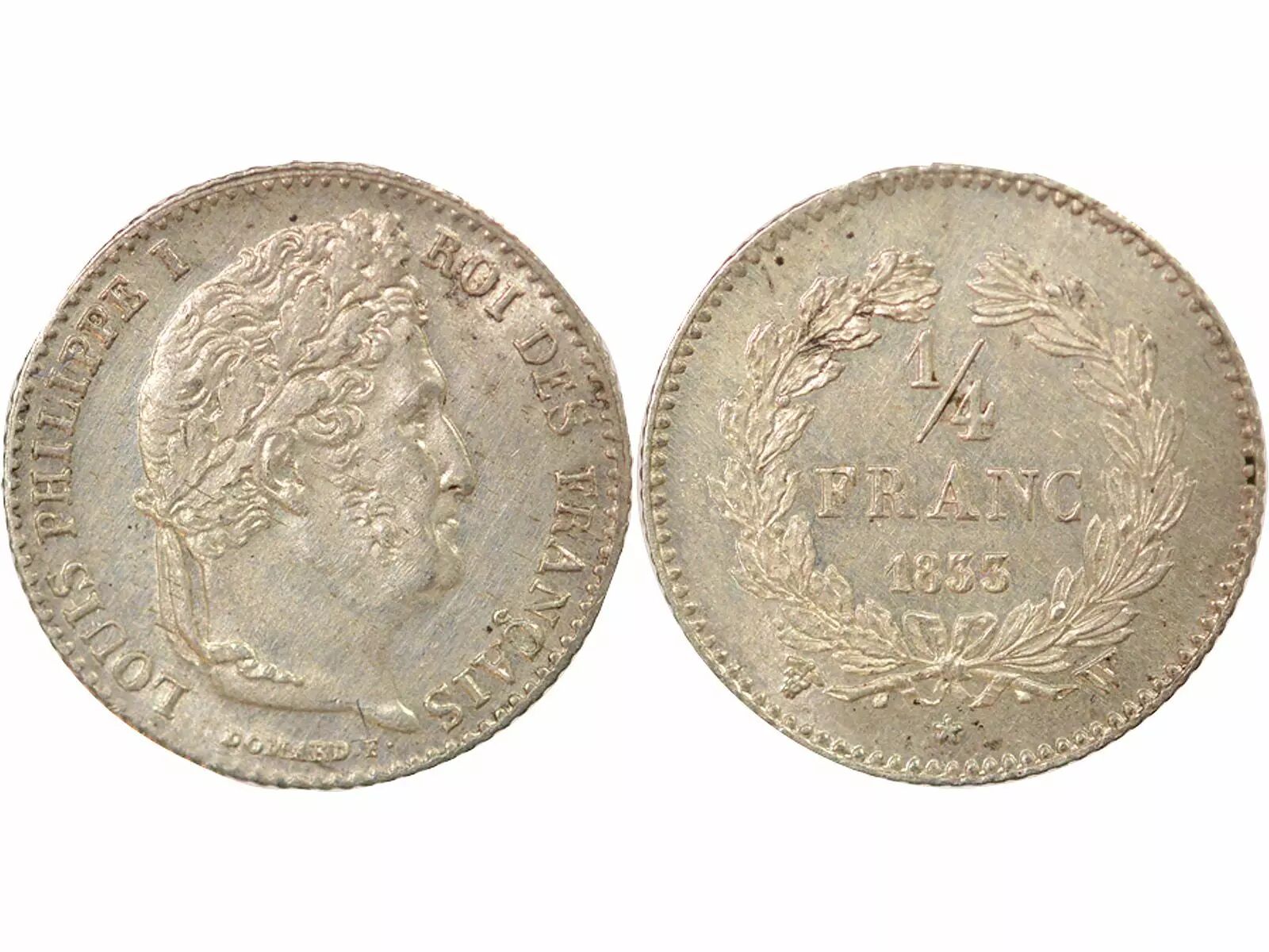 Pièce France Louis Philippe I - 1/4 Franc Argent - 1833 W Lille