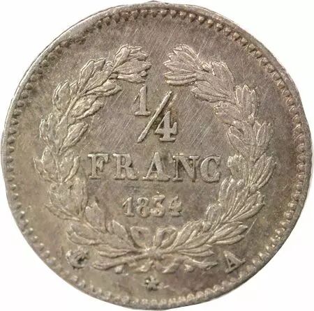 Pièce France Louis Philippe I - 1/4 Franc Argent - 1834 A Paris