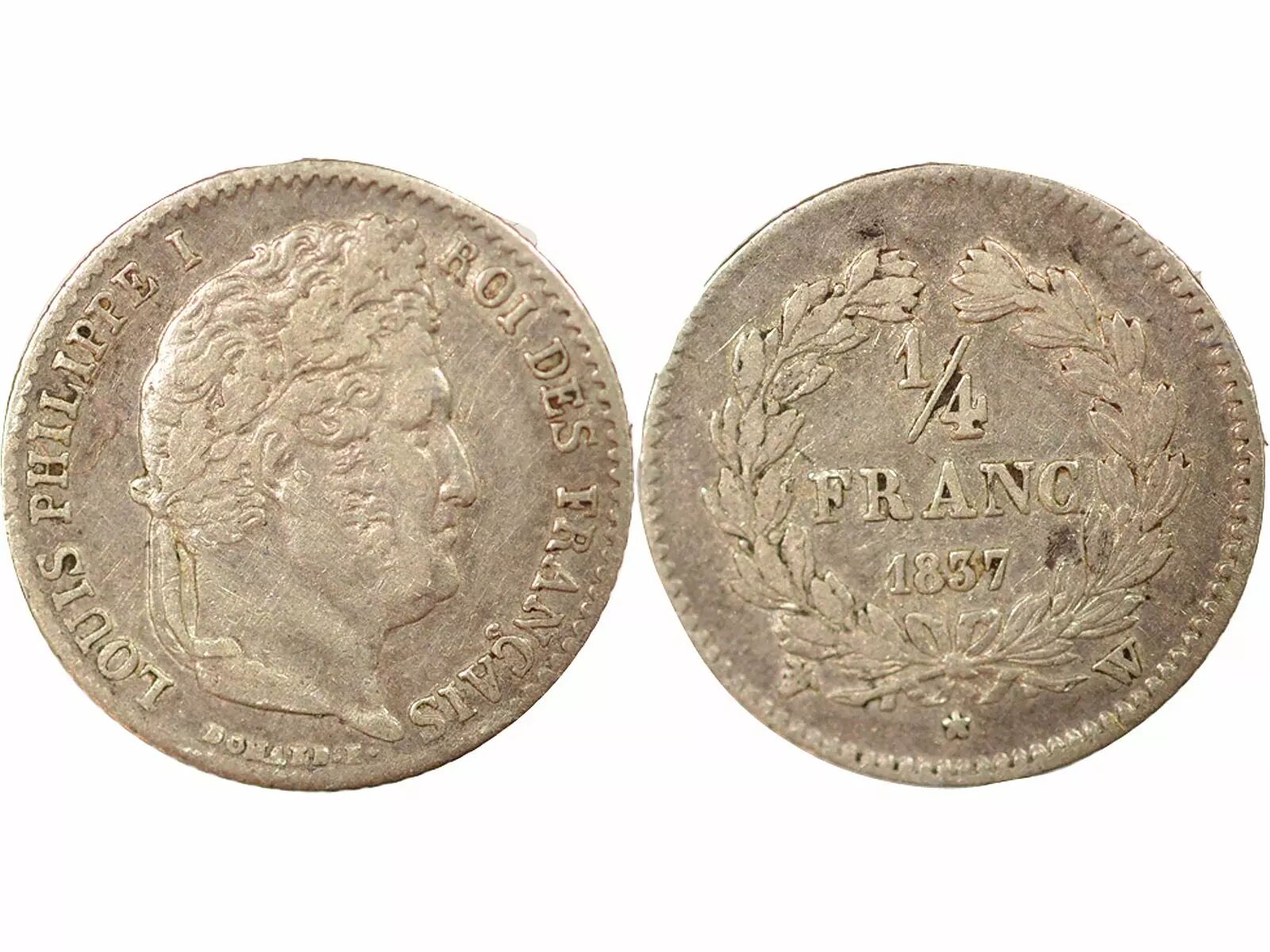 Pièce France Louis Philippe I - 1/4 Franc Argent - 1837 W Lille