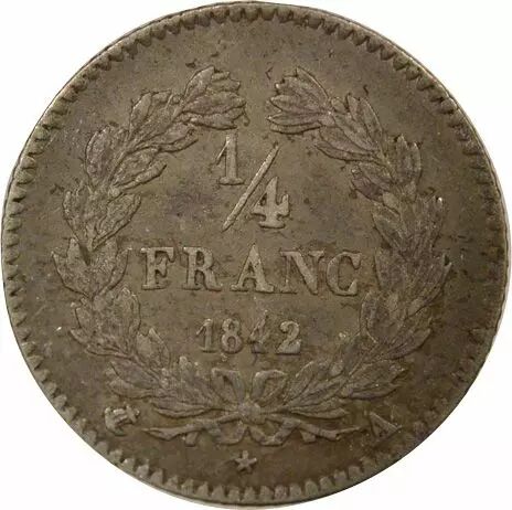 Accueil > Archivage > archivage-Monnaies françaises (470 à 2002) > France Louis Philippe I - 1/4 Franc Argent - 1842 A Paris