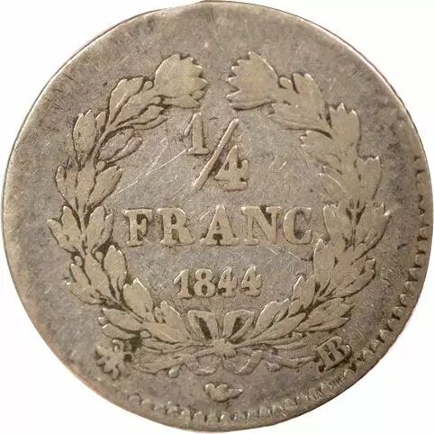Accueil > Archivage > archivage-Monnaies françaises (470 à 2002) > France Louis Philippe I - 1/4 Franc Argent - 1844 BB Strasbourg