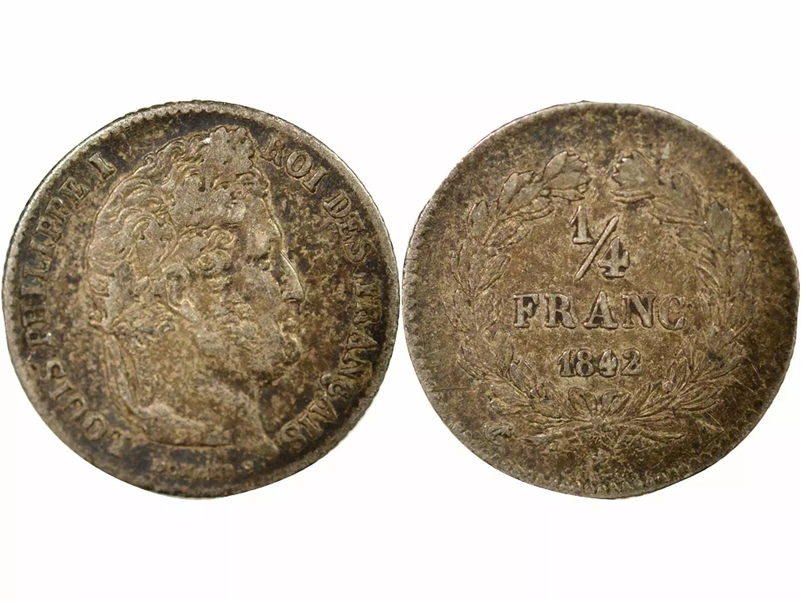 Coin France Louis Philippe I - 1/4 Silver Franc - 1842 A Paris