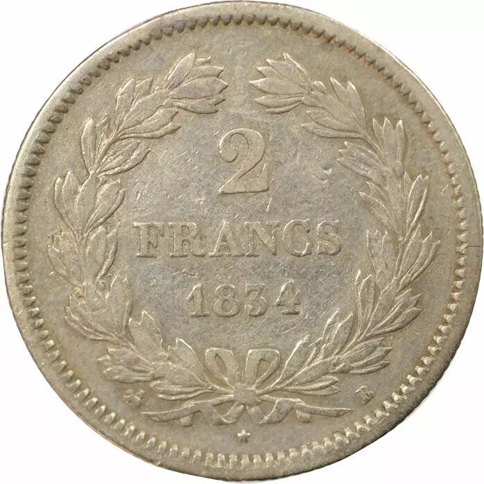 Pièce France Louis Philippe I - 2 Francs Argent - 1834 B Rouen