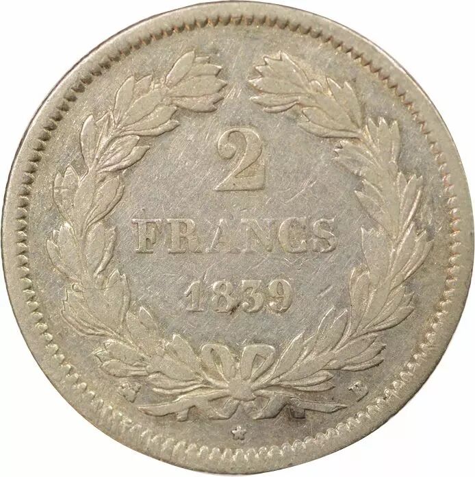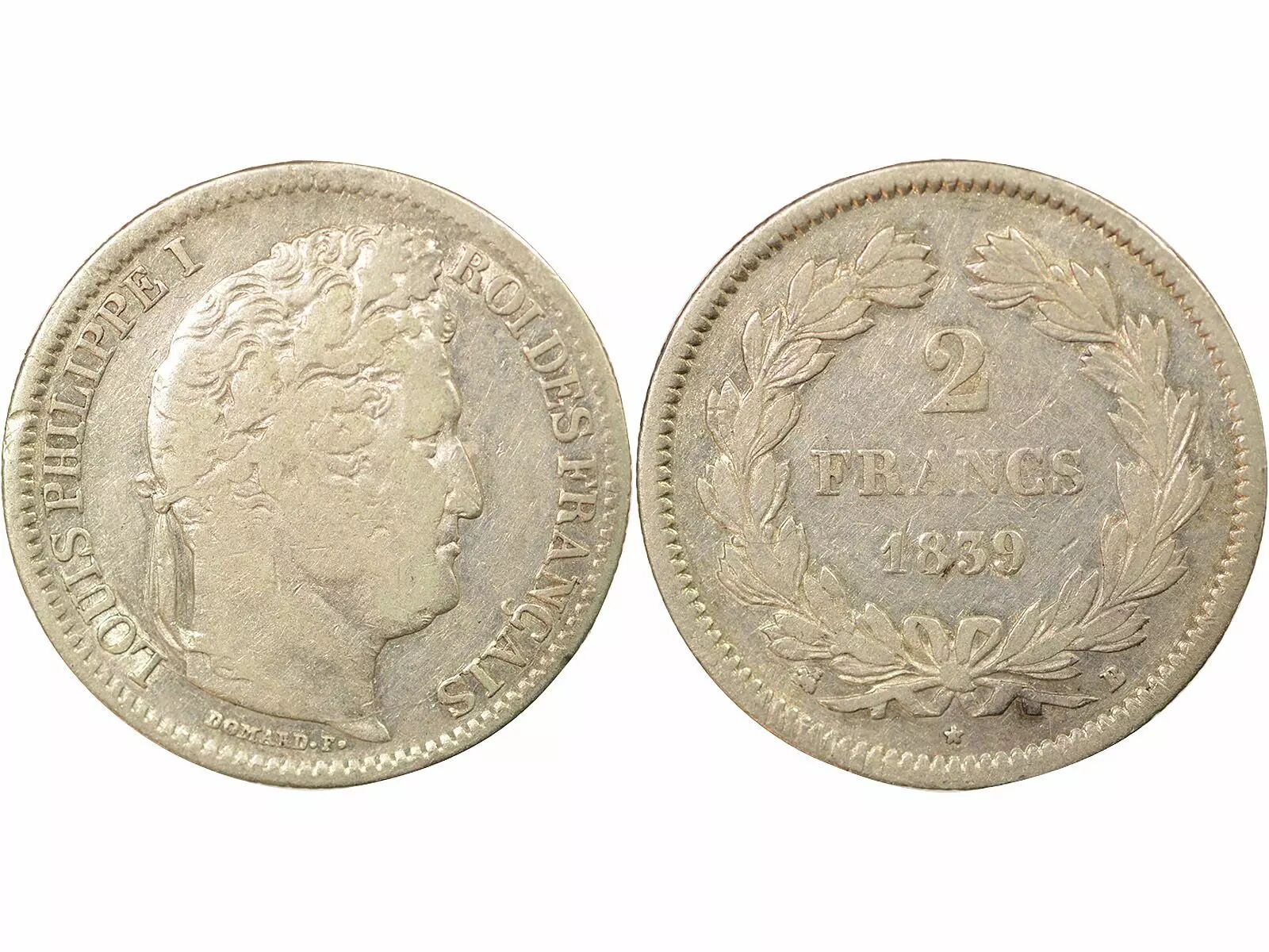 Coin France Louis Philippe I - 2 Silver Francs - 1839 B Rouen