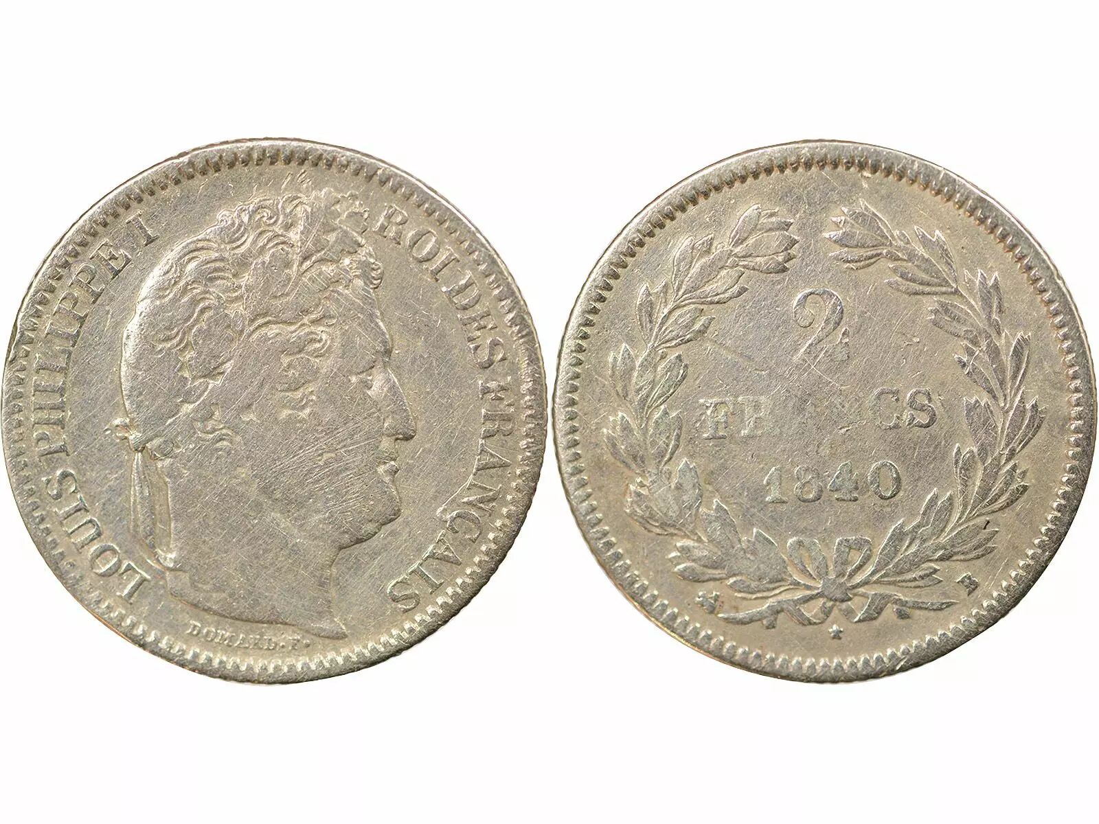 Coin France Louis Philippe I - 2 Silver Francs - 1840 B Rouen