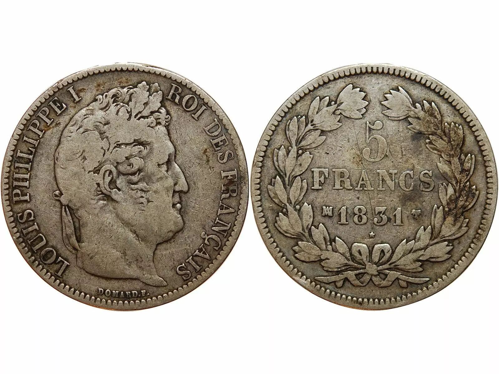 Pièce France Louis Philippe I - 5 Francs Argent, Domard, Tr. en Relief - 1831 Ma Marseille