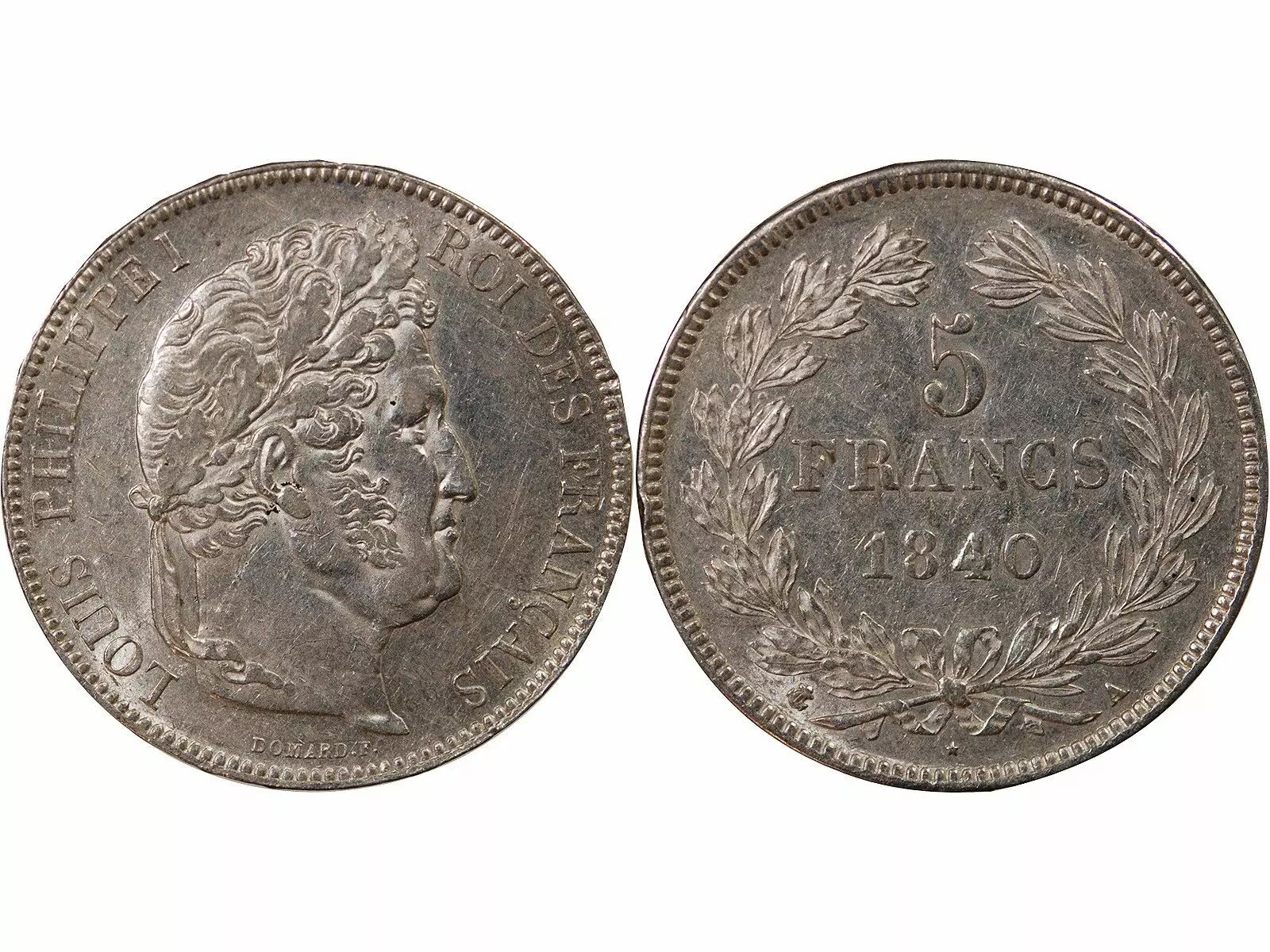 Pièce France Louis Philippe I - 5 Francs Argent, Domard, Tr. en Relief - 1840 A Paris