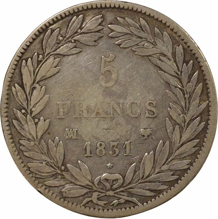 Accueil > Archivage > archivage-Monnaies françaises (470 à 2002) > France Louis Philippe I - 5 Francs Argent, Tr. en Creux - 1831 MA Marseille