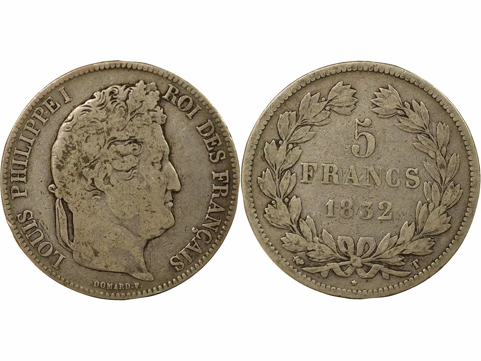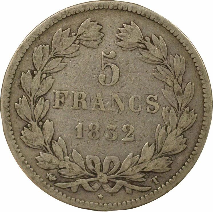 Pièce France Louis Philippe I - 5 Francs Argent, Tr. en Relief - 1832 T Nantes