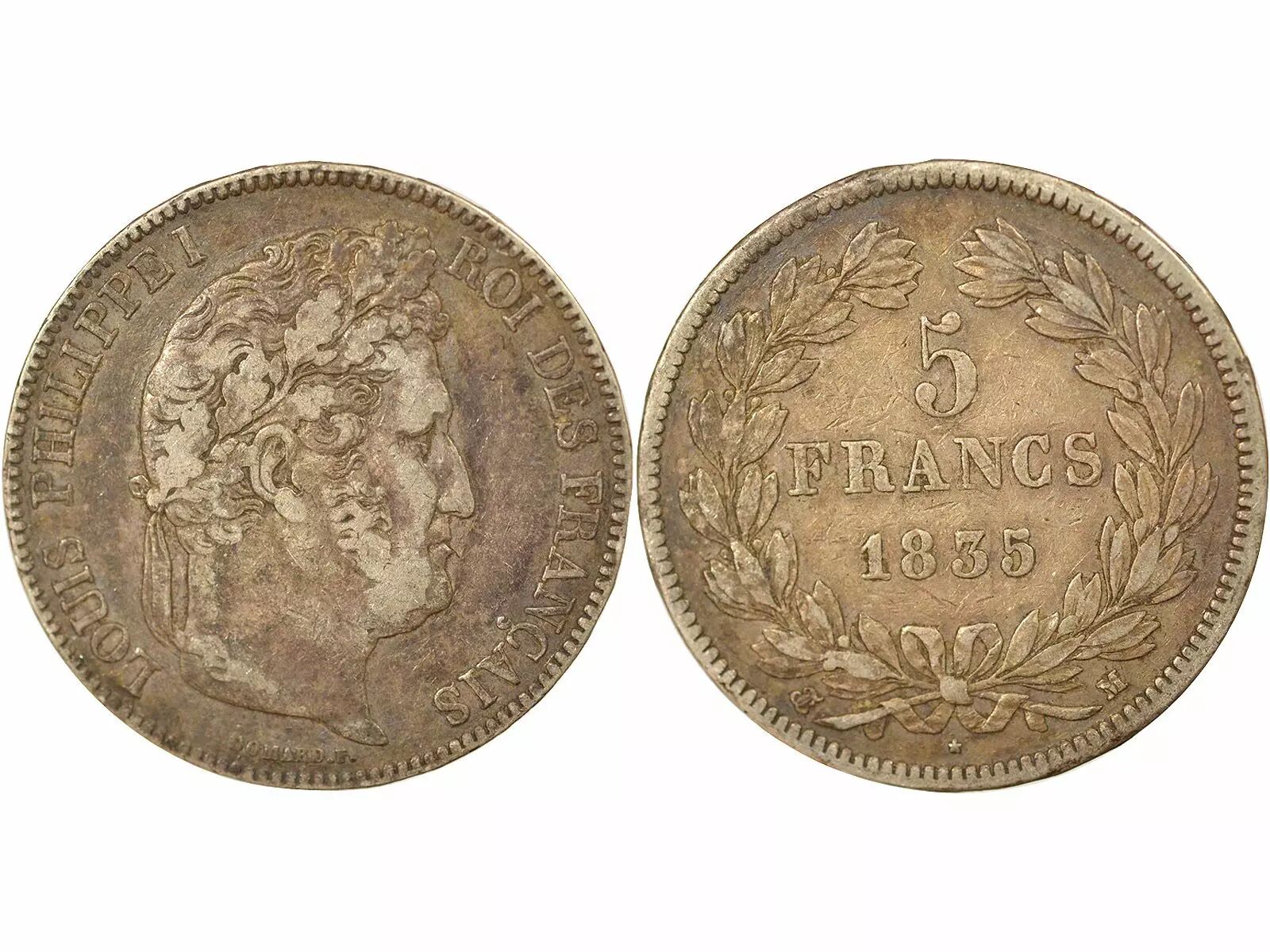 Pièce France Louis Philippe I - 5 Francs Argent, Tr. en Relief - 1835 M Toulouse