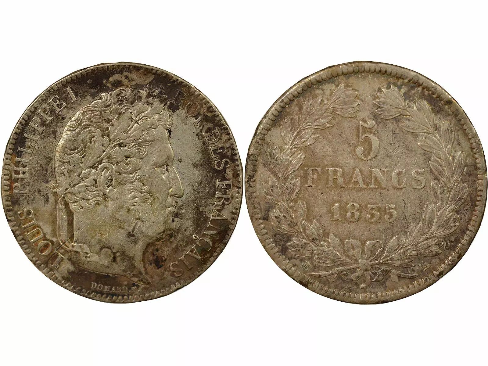 Coin France Louis Philippe I - 5 Silver Francs, Domard, IInd Type - 1835 A Paris