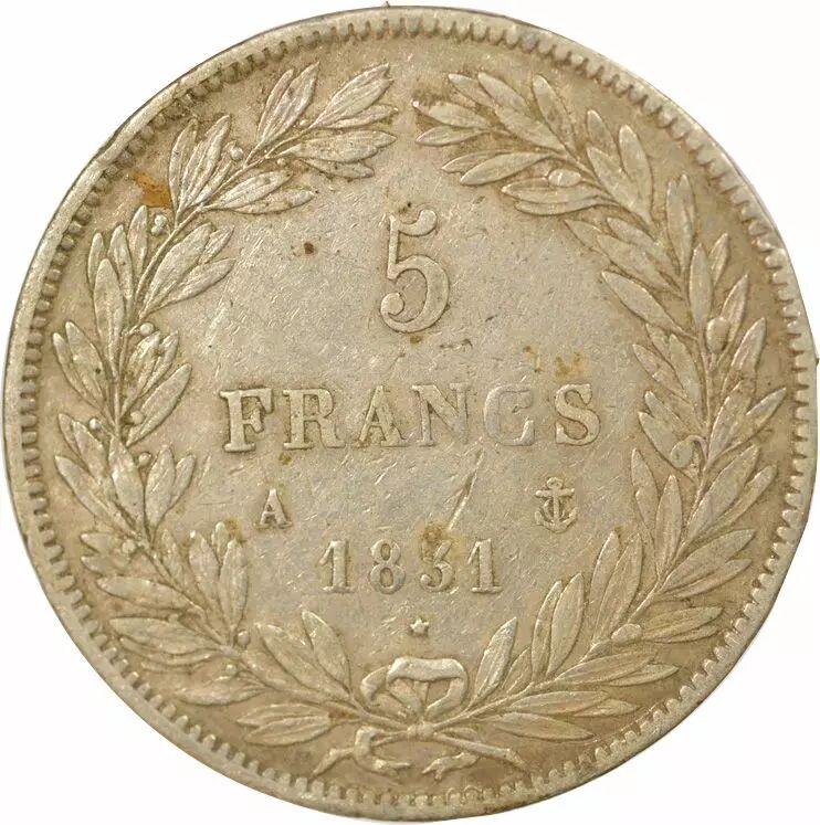 Home > > France Louis Philippe I - 5 Silver Francs, Hollowed Edge - 1831 A Paris