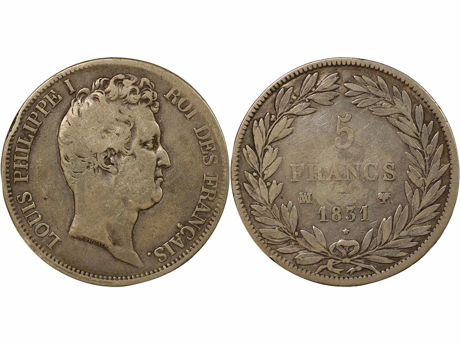 Home > French coins (470 à 2002) > Modern Currencies (1789 to 2002) > 5 Francs > France Louis Philippe I - 5 Silver Francs, Hollowed Edge - 1831 MA Marseille