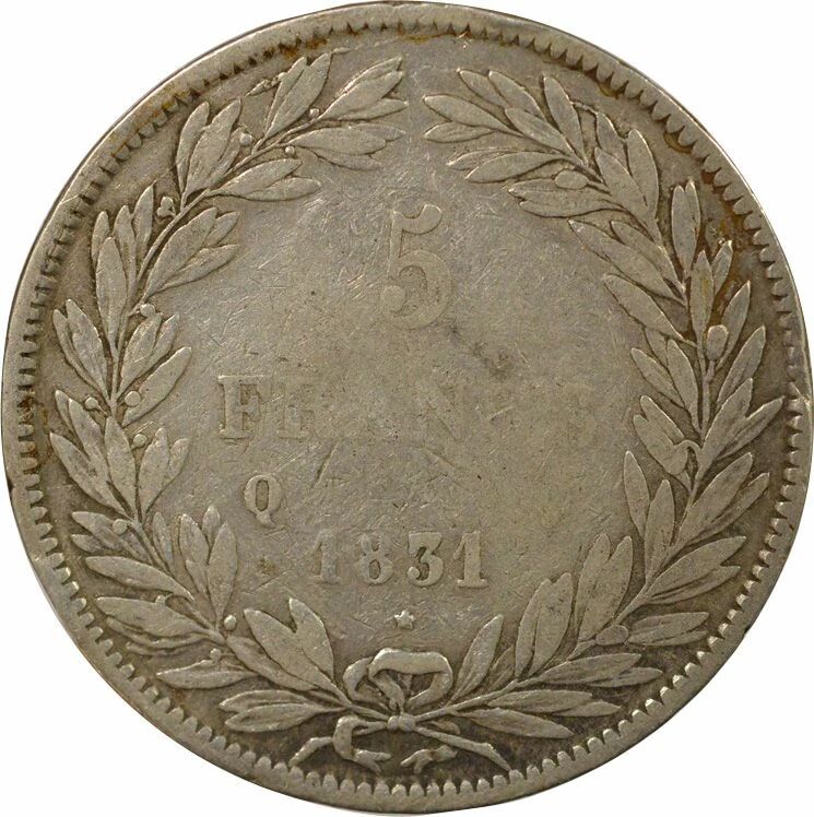 Home > French coins (470 à 2002) > Modern Currencies (1789 to 2002) > 5 Francs > France Louis Philippe I - 5 Silver Francs, Hollowed Edge - 1831 Q Perpignan