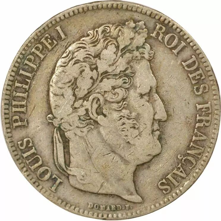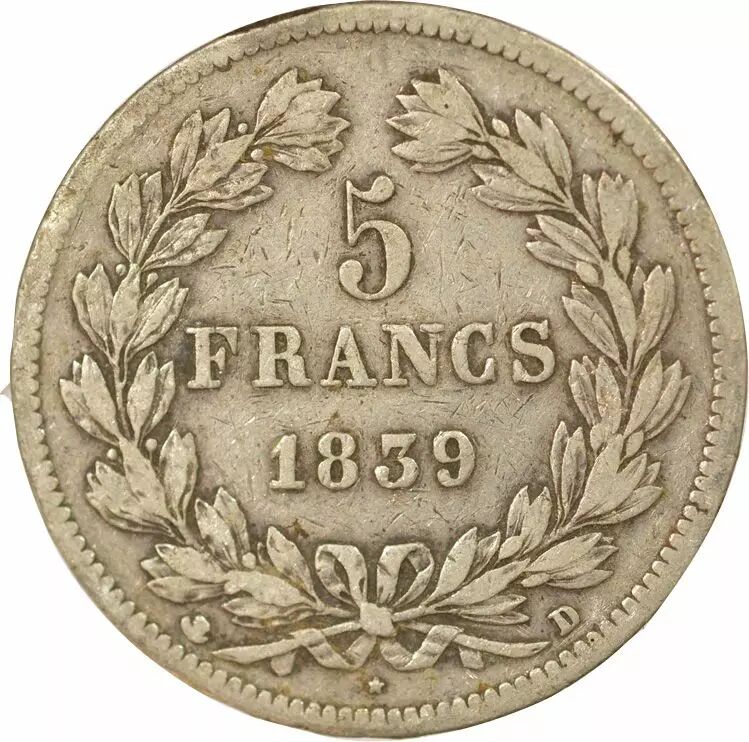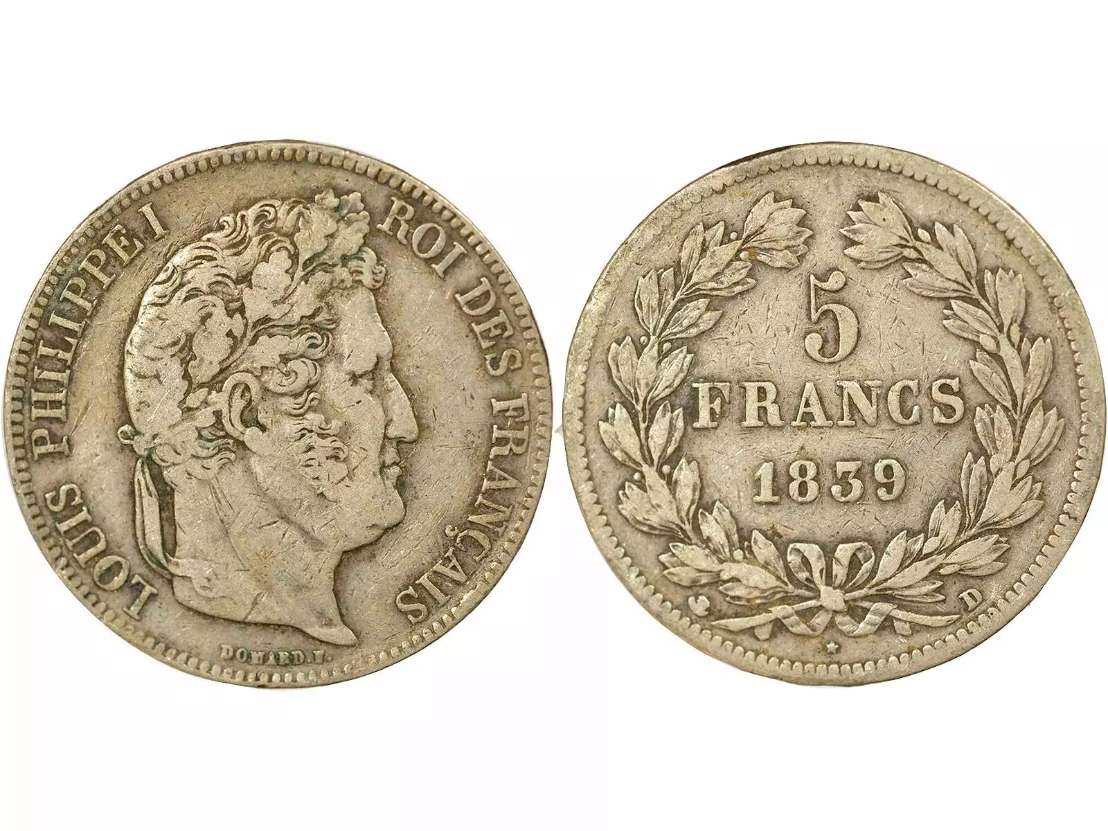 Coin France Louis Philippe I - 5 Silver Francs, Raised Edge - 1839 D Lyon