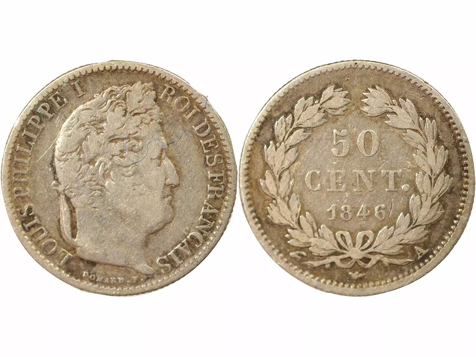 Coin France Louis Philippe I - 50 Silver Centimes- 1846 A Paris