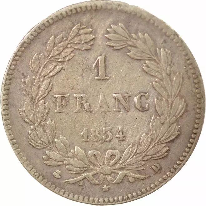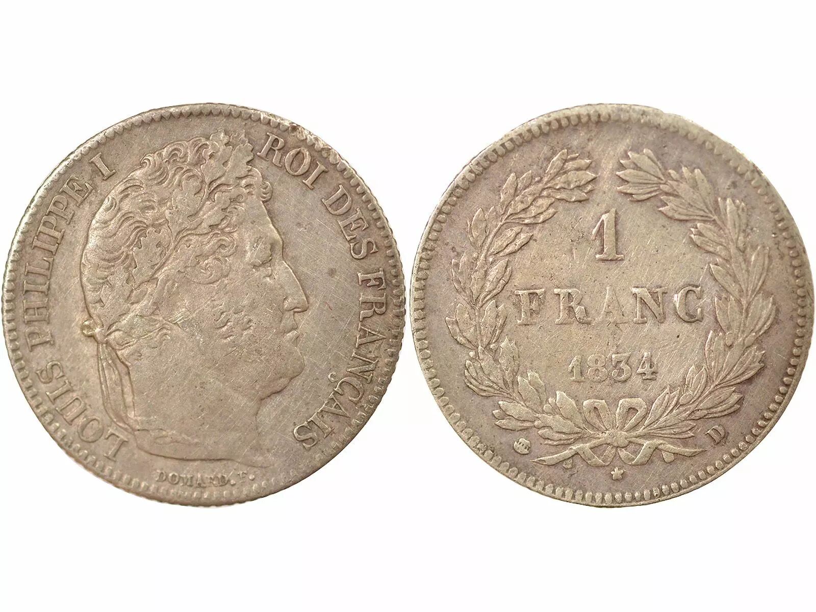 Pièce France Louis Philippe I - Franc Argent, Tête Laurée - 1834 D Lyon
