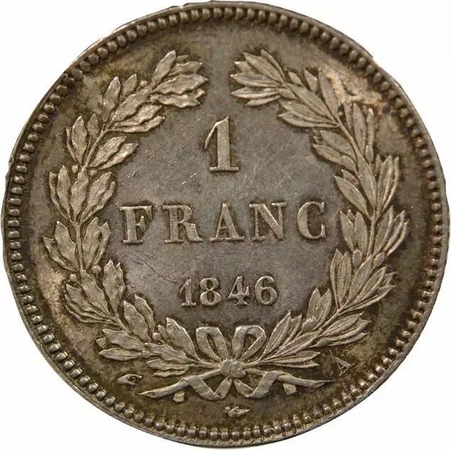 Accueil > Monnaies françaises (470 à 2002) > Monnaies Modernes (1789 à 2002) > 1 franc > France Louis Philippe I - Franc Argent, Tête Laurée - 1846 A Paris