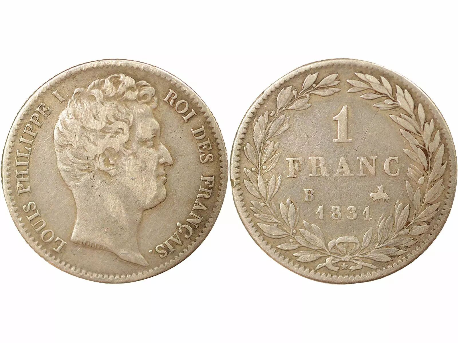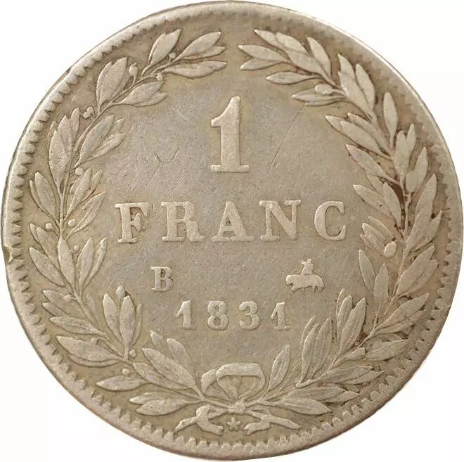Pièce France Louis Philippe I - Franc Argent, Tête nue - 1831 B Rouen
