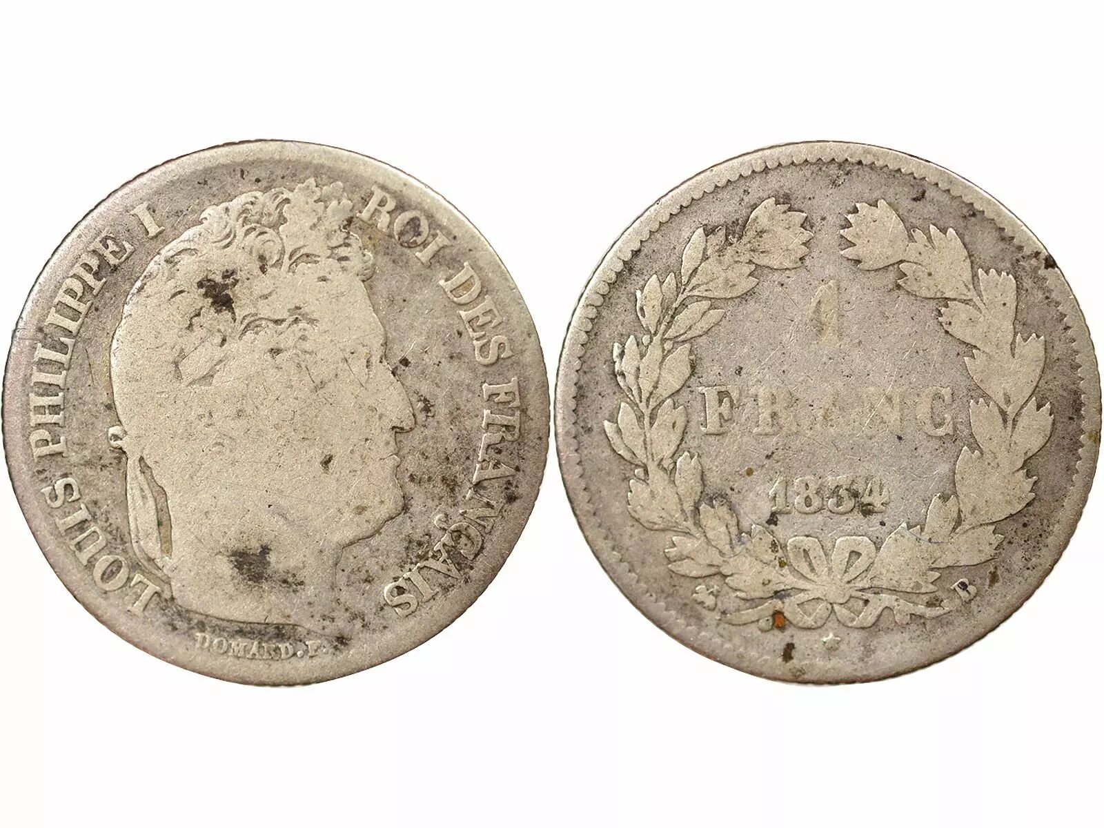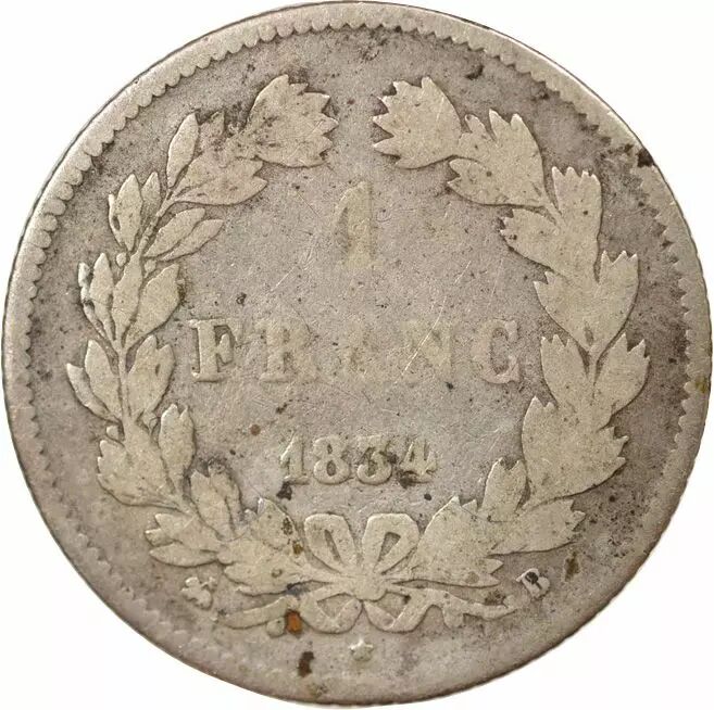 Coin France Louis Philippe I - Silver Franc, Laureate Head - 1834 B Rouen