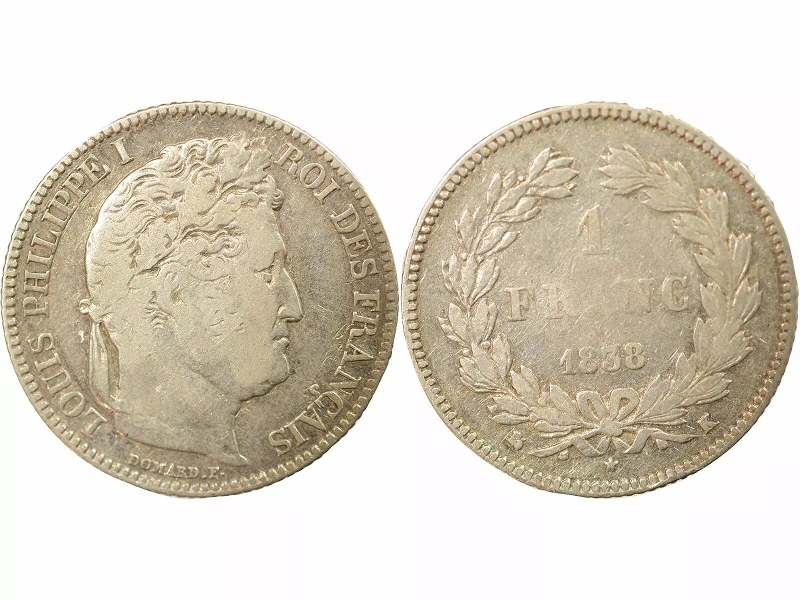 Coin France Louis Philippe I - Silver Franc, Laureate Head - 1838 K Bordeaux
