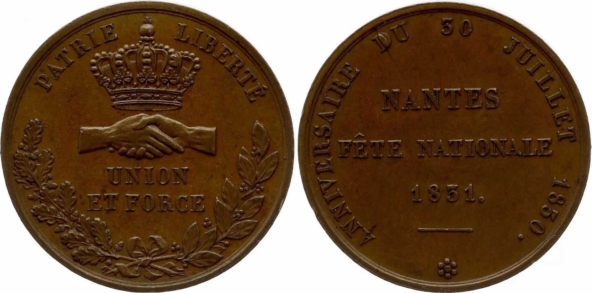 Pièce France Louis Philippe I - Ville de Nantes - Fêtes Anniversaire Révolution de Juillet - 1831