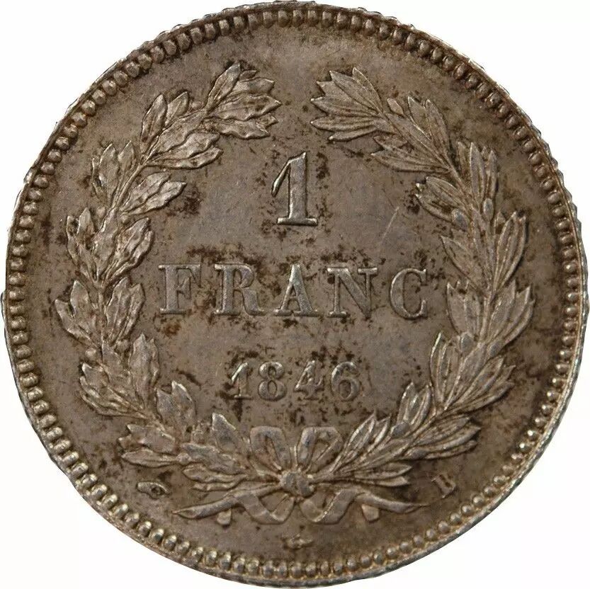Pièce France Louis Philippe Ier - 1 Franc Argent, Tête laurée, 1846 B Rouen