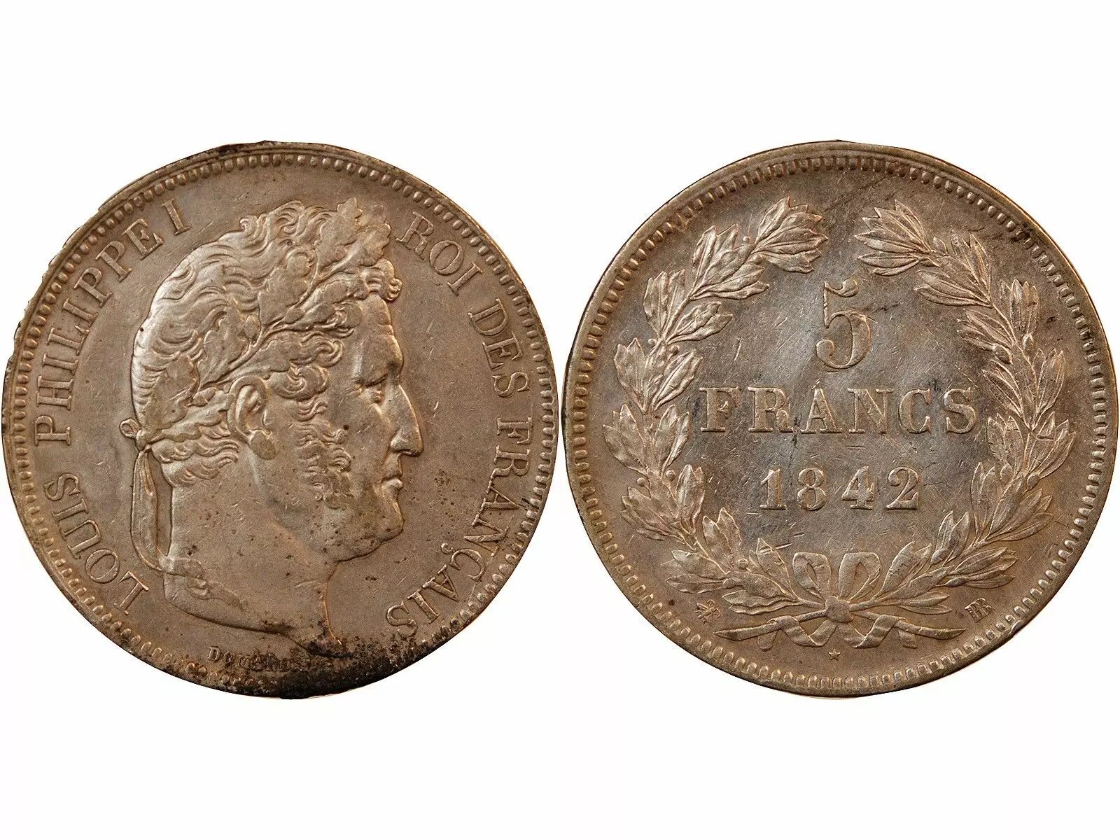 Coin France Louis Philippe Ier - 5 Francs Argent 1842 BB Strasbourg "Type Domard, Tr Relief