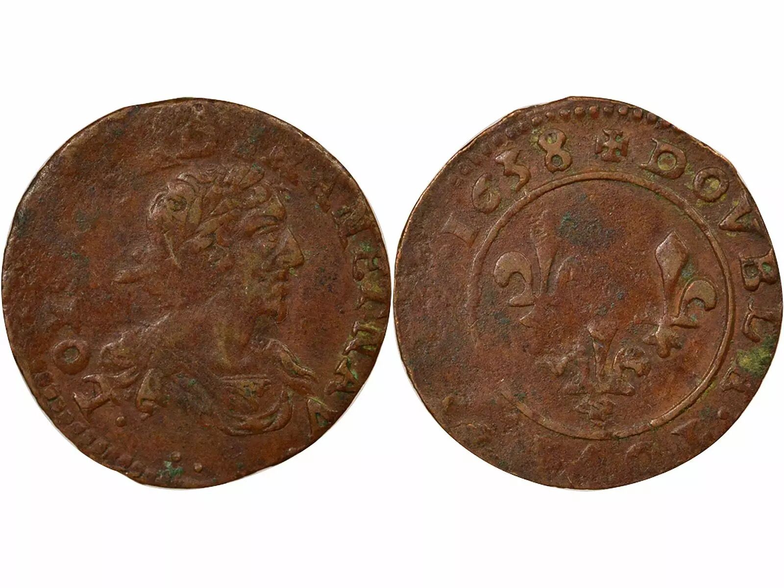 Pièce France Louis XIII - Double Tournois - 1638 Vallée-du-Rhône