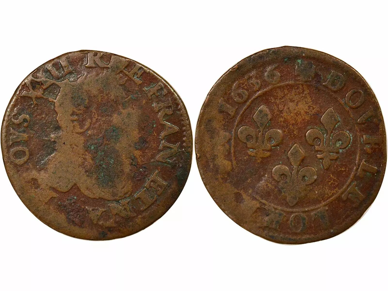Coin France Louis XIII - Double Tournois of Lorraine, Type 8 - 1636 Stenay