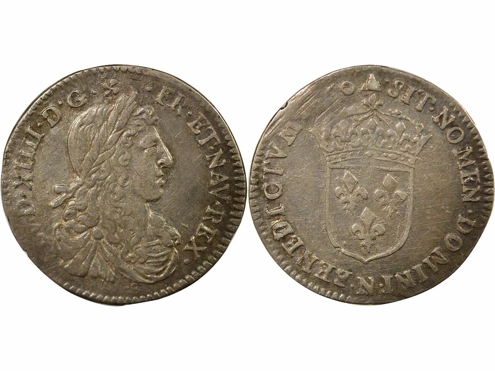 Pièce France Louis XIV - 1/12 Ecu Argent au Buste Juvénile - 1660 N Montpellier