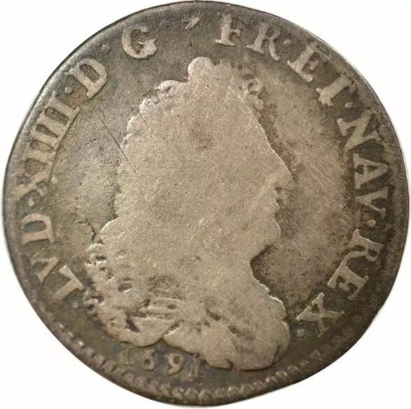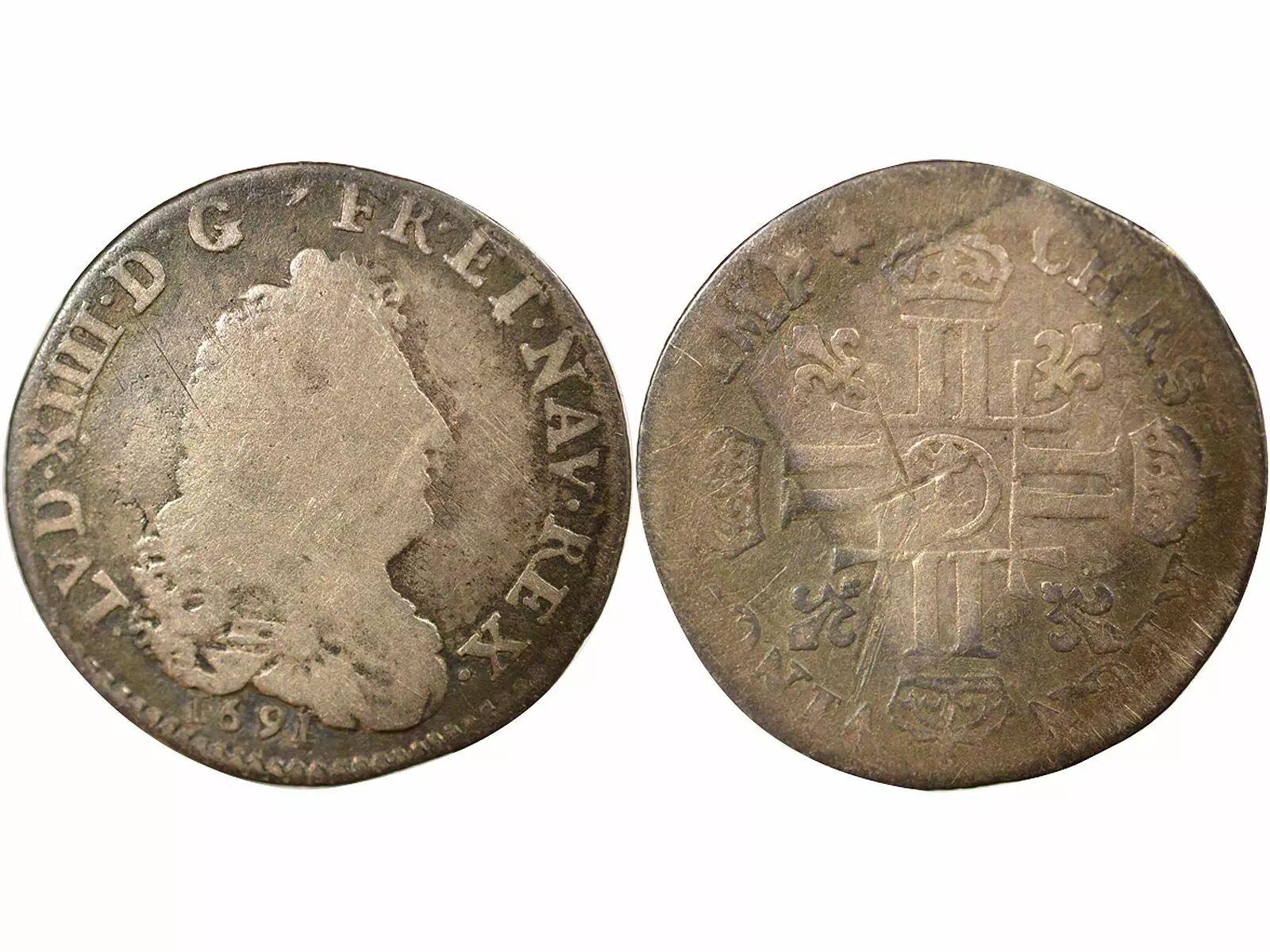 Pièce France Louis XIV - 1/12 Ecu Argent, aux Huit L - 1691 L Lille