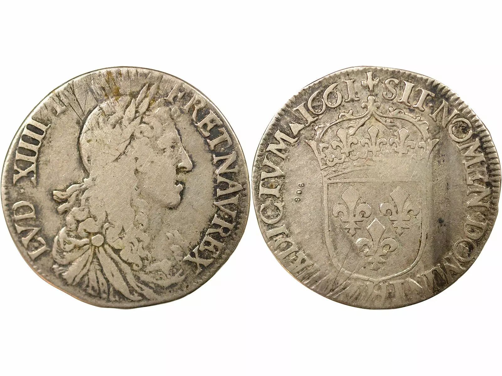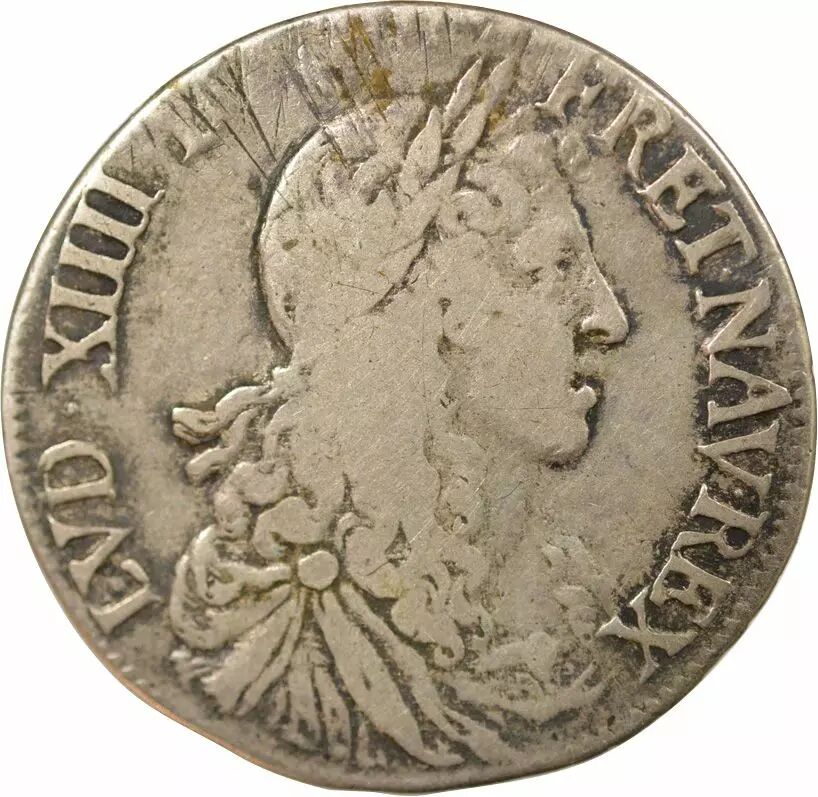 Pièce France Louis XIV - 1/2 Ecu Argent au Buste Juvénile - 1661 H La Rochelle