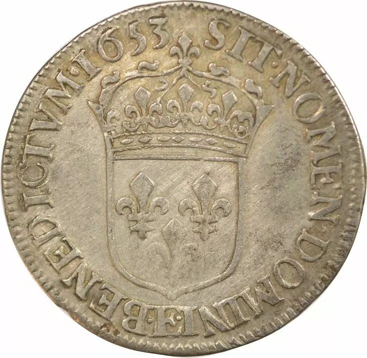 Coin France Louis XIV - 1/2 Silver Ecu with Long Wick - 1653 E Tours