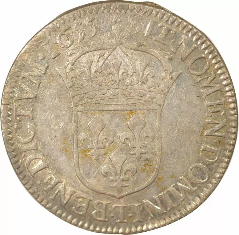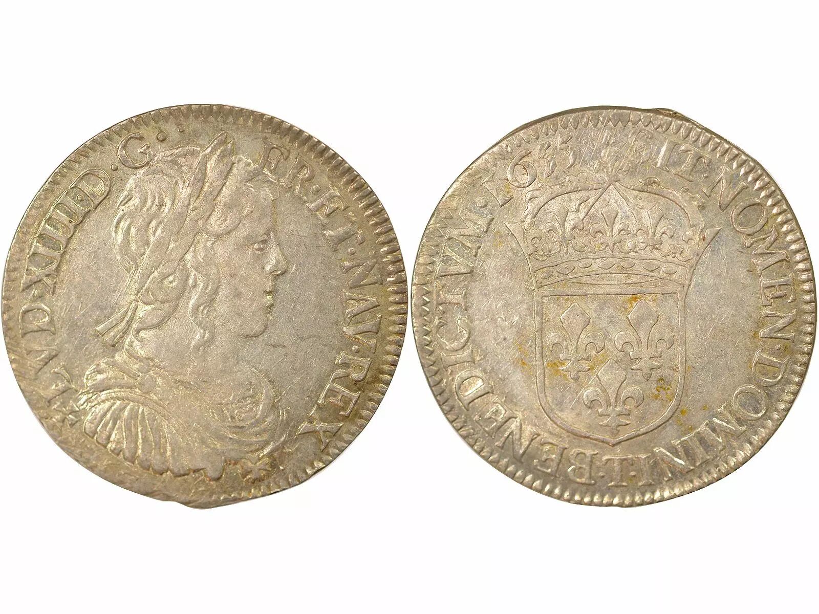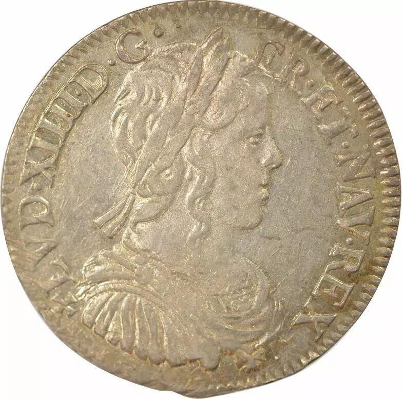 Home > > France Louis XIV - 1/2 Silver Ecu, with Long Wick - 1655 T Nantes
