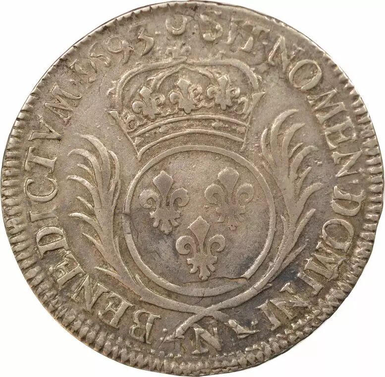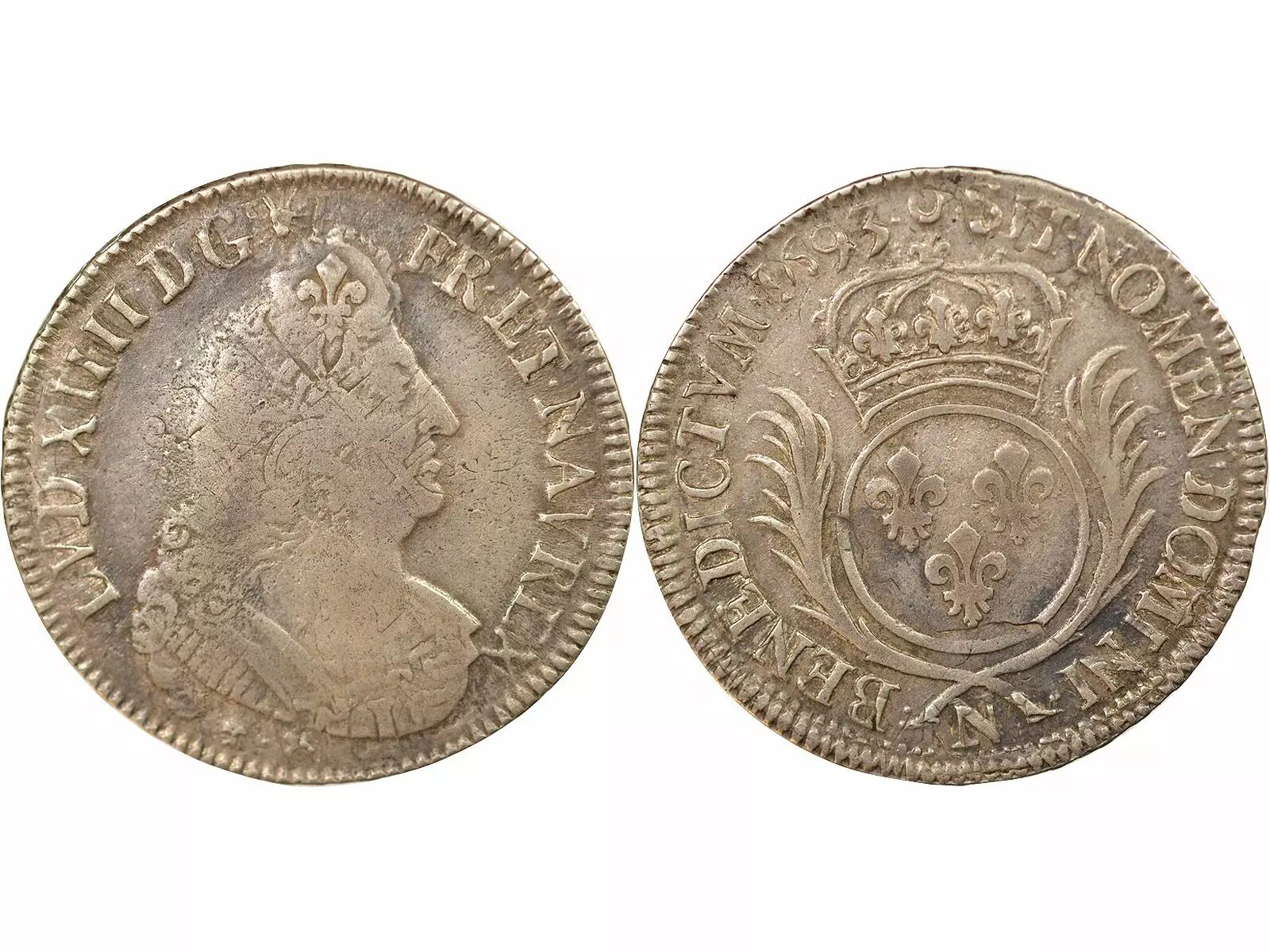 Coin France Louis XIV - 1/2 Silver Ecu, with Palms - 1693 N Montpellier