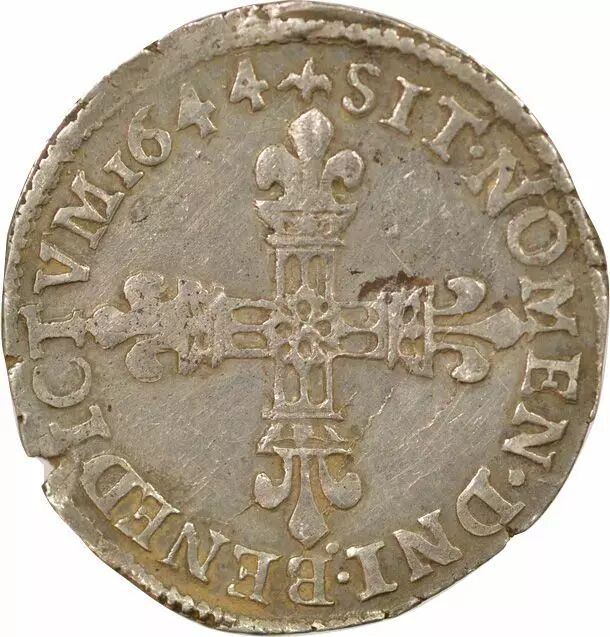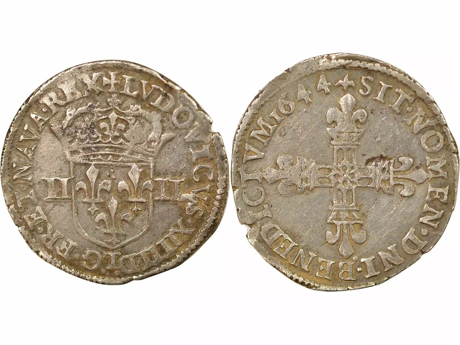 Coin France Louis XIV - 1/4 Silver Ecu - 1644 T Nantes