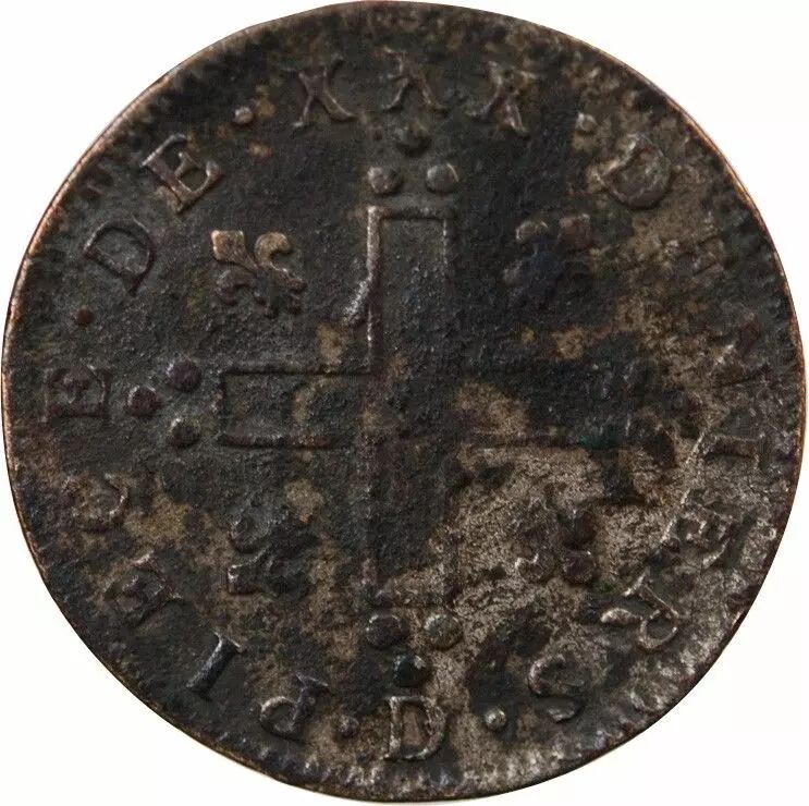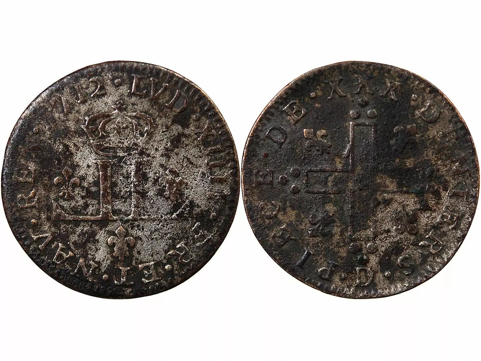 Home > > France Louis XIV - 30 Deniers Aux 2 L Couronnés, Dits Mousquetaire - 1712 D Lyon