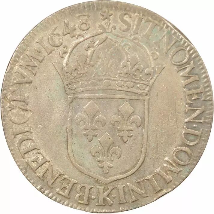 Pièce France Louis XIV - Ecu Argent à la Mèche Longue - 1648 K Bordeaux
