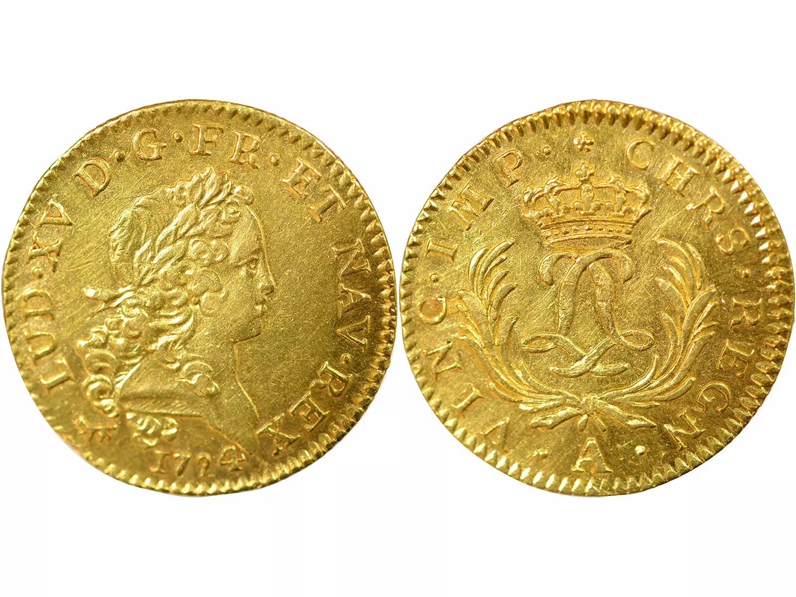 Home > > France Louis XIV - Gold Louis, Mirliton with Long Palms - 1724 A Paris