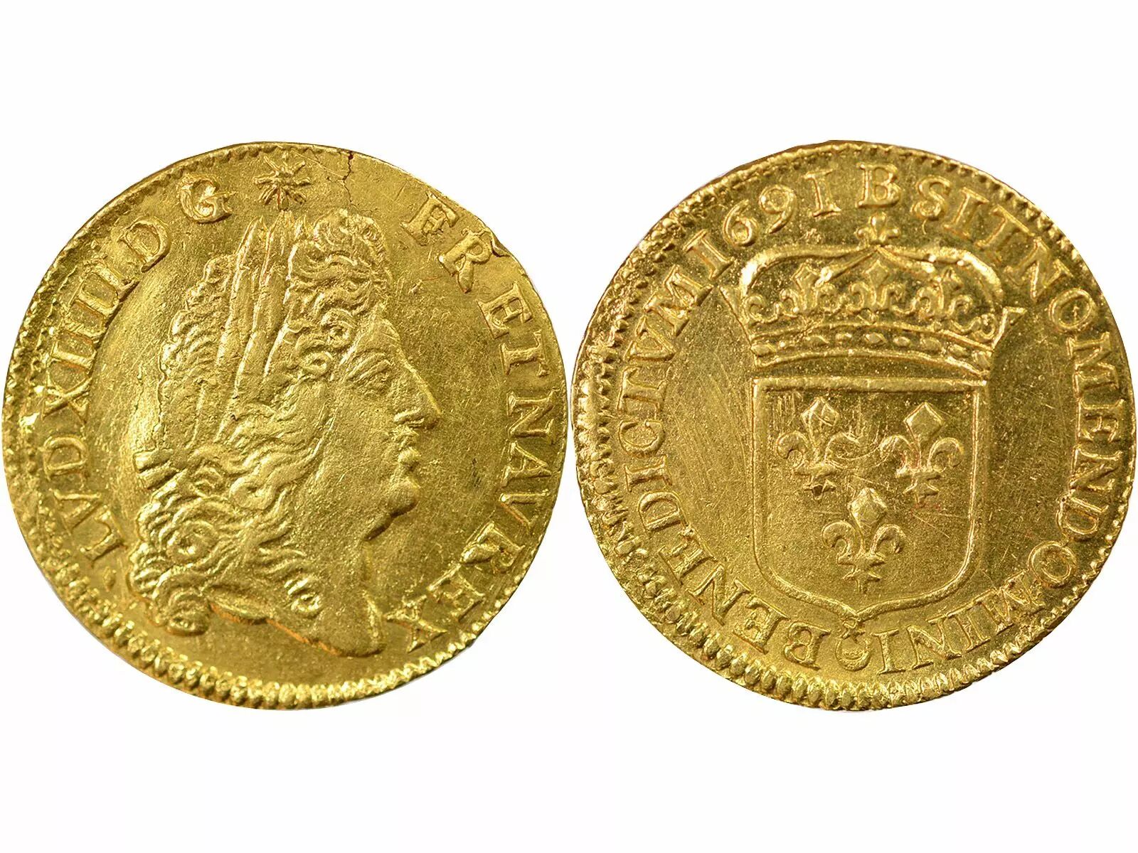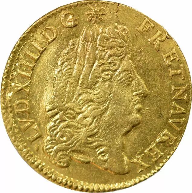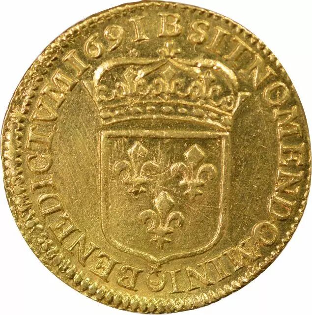 Réformation d'un Louis d'or aux Huit L frappé à Lyon. Nettoyé (hairlines), griffures à gauche de l'écu.
