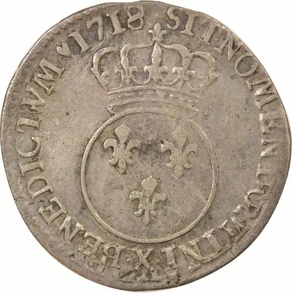Coin France Louis XV - 1/10 Silver Ecu Vertugadin, reformed - 1718 X Amiens