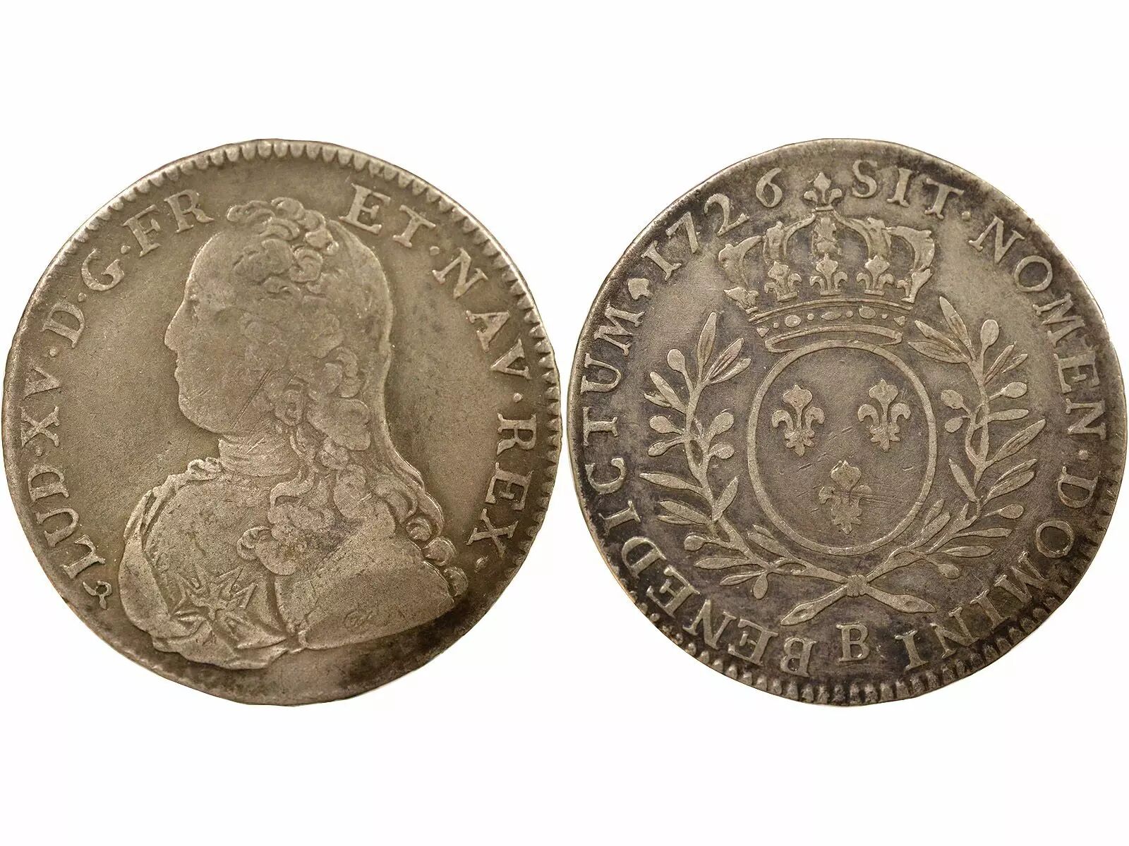 Pièce France Louis XV - 1/2 Écu Argent au Buste Habillé - 1726 B Rouen