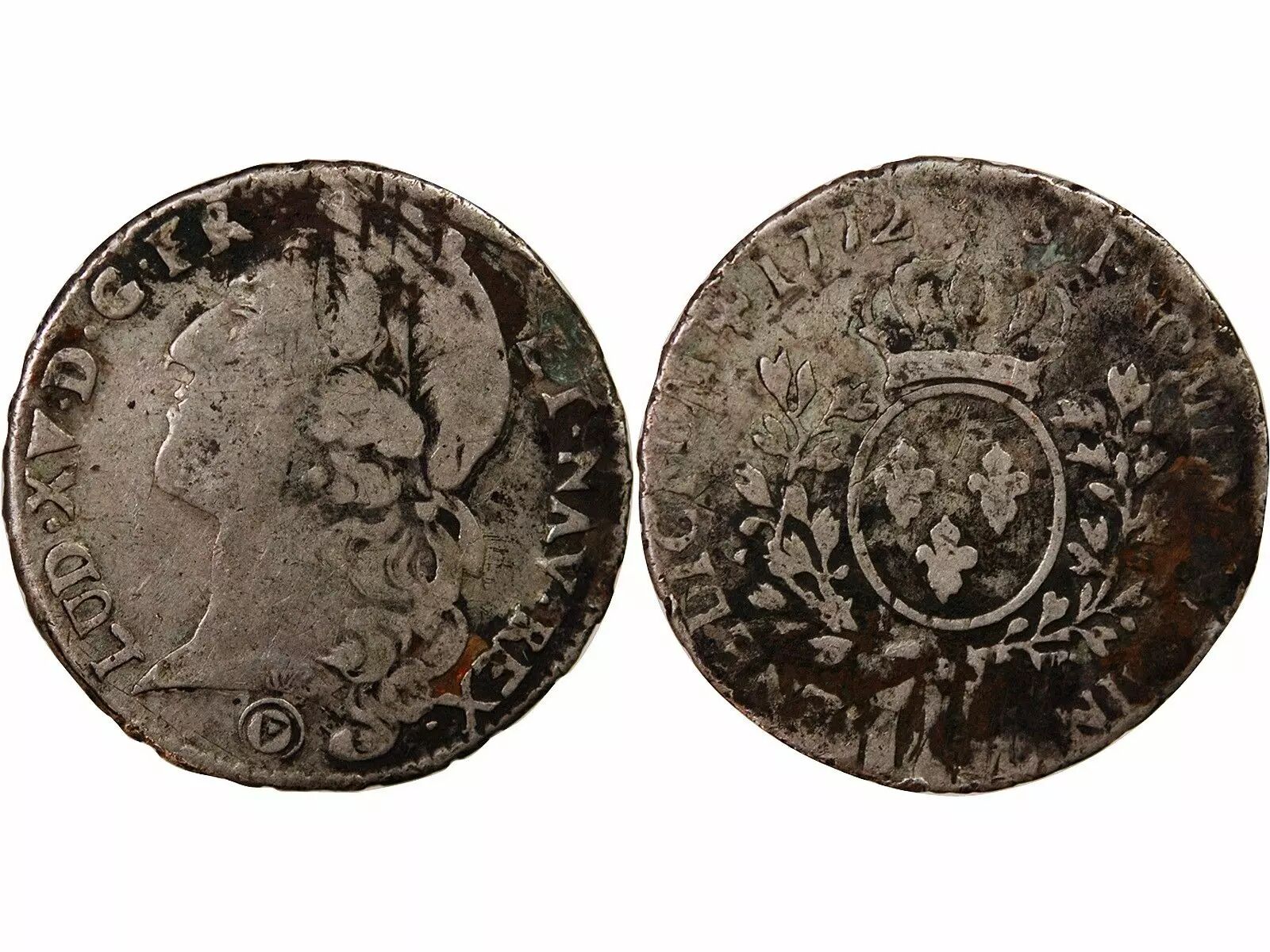 Coin France Louis XV - 1/2 Silver Ecu with Headband - 1772 Q Perpignan - R5