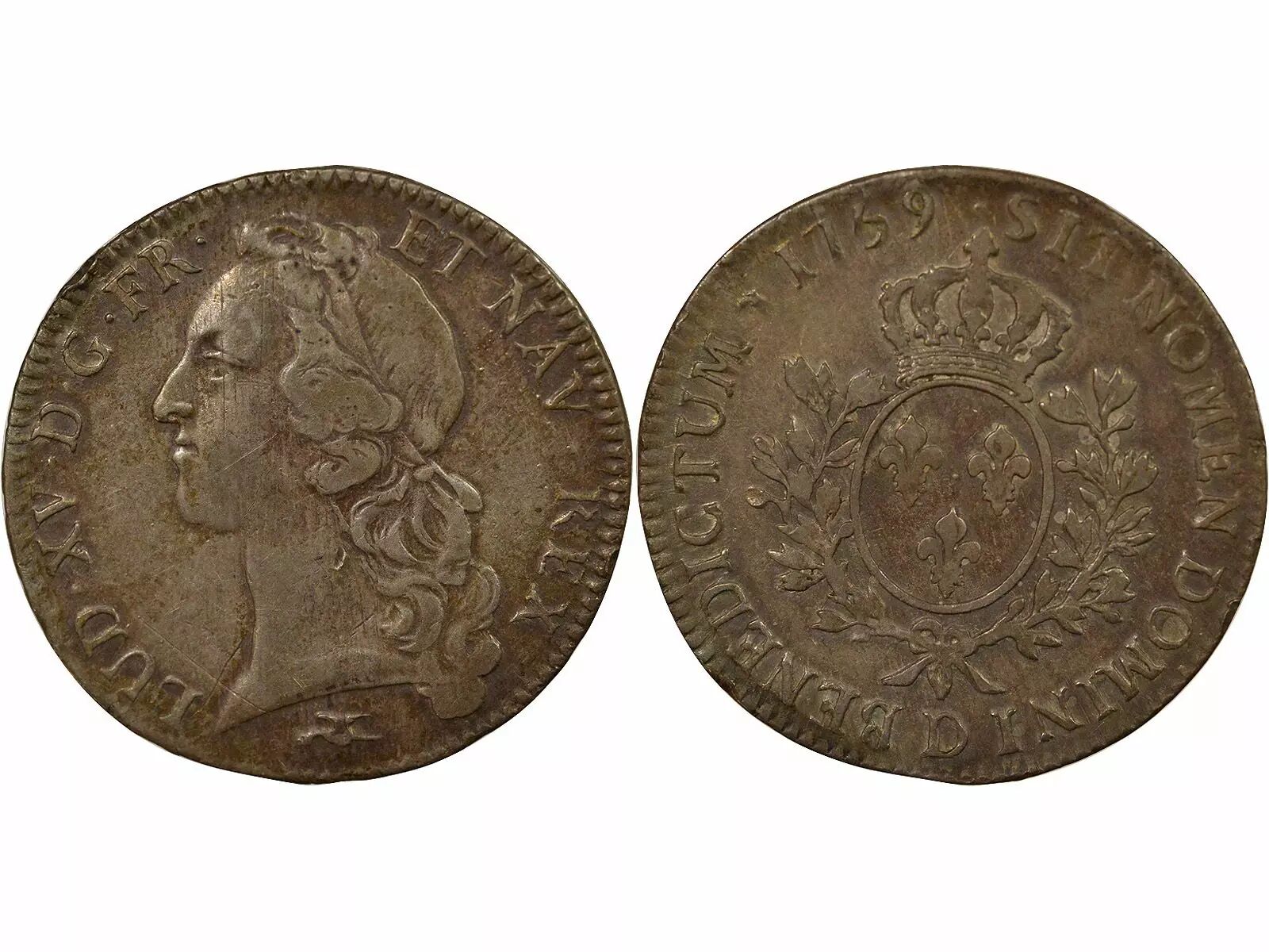 Pièce France Louis XV - Ecu Argent, au Bandeau - 1759 D Lyon