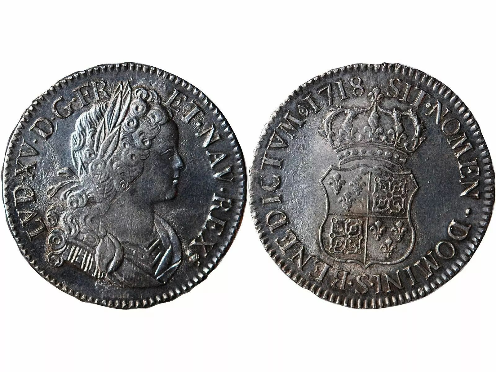 Pièce France Louis XV - Ecu De France & Navarre 1718 S Reims