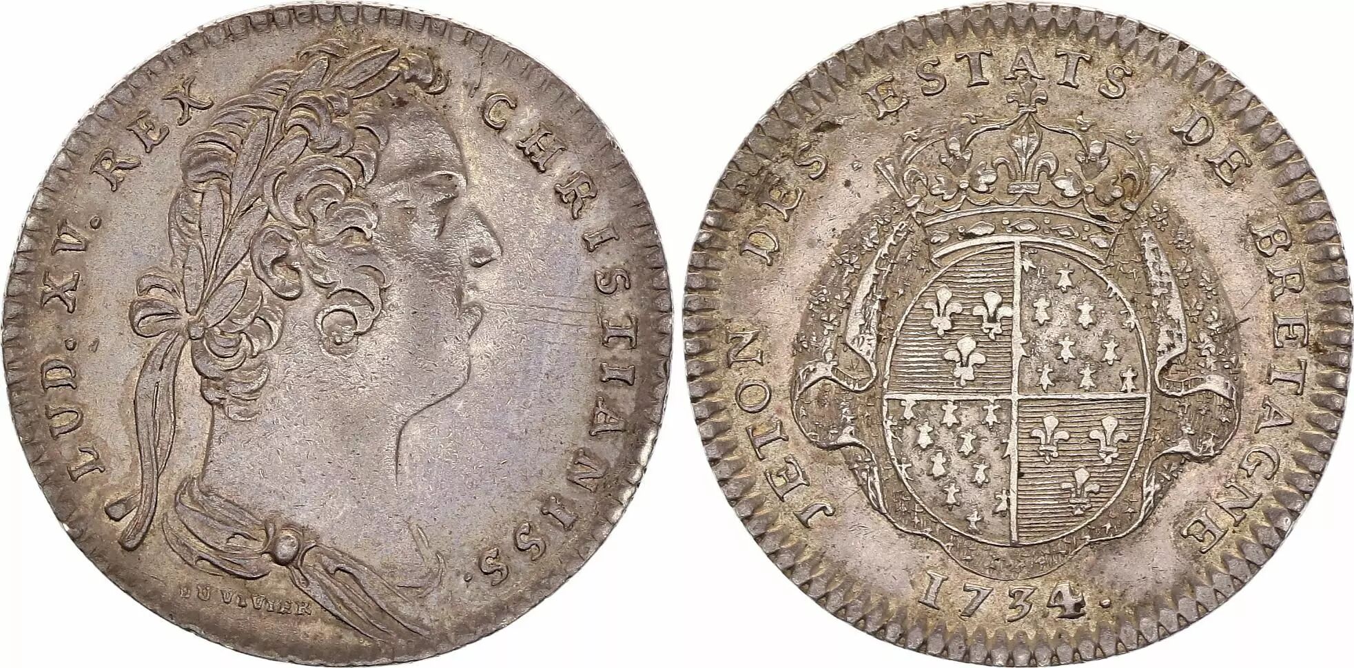 France Louis XV - Etats de Bretagne - Rennes - 1734 - Silver