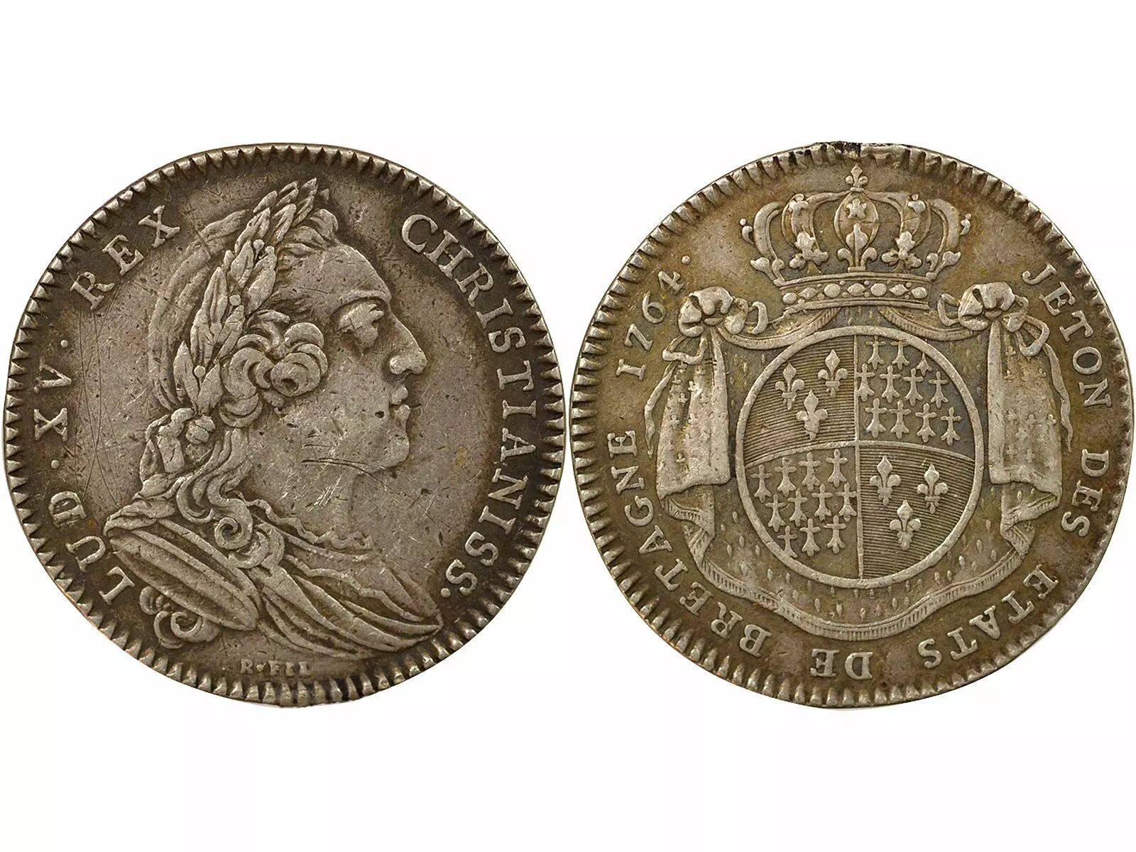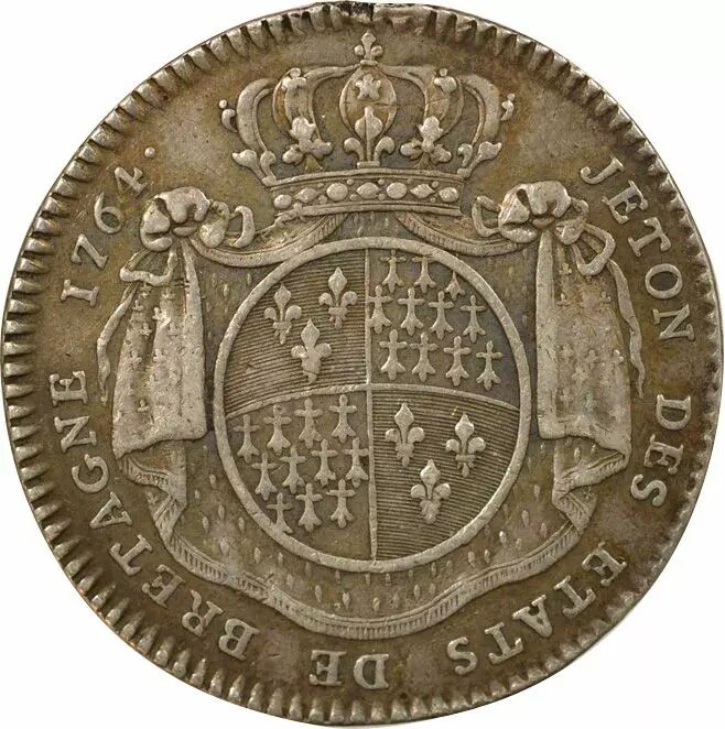 Revers : JETON DES ETATS DE BRETAGNE 1764 .